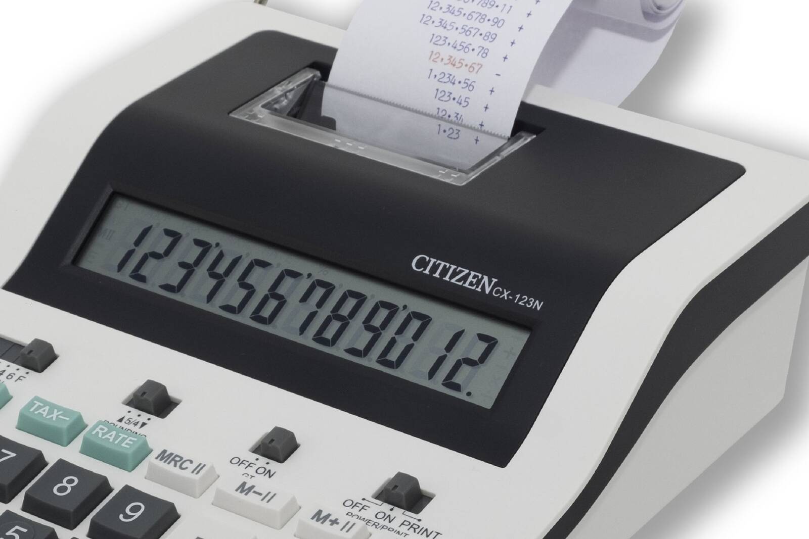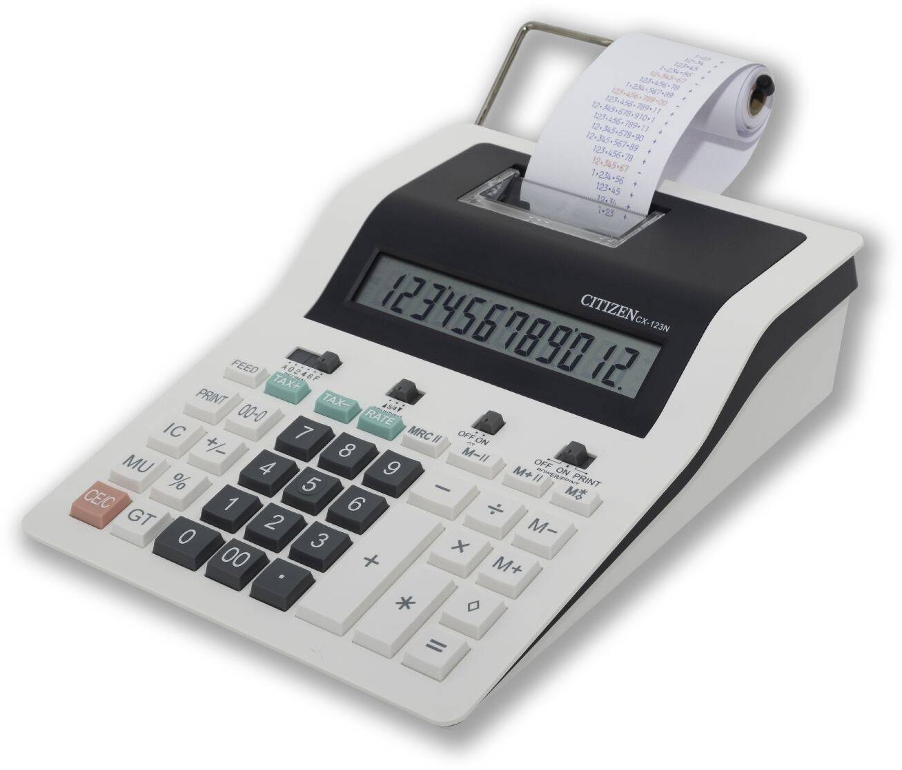 Kalkulator drukujący Citizen CX-32N dedykowany jest dla osób ceniących sobie możliwość wydrukowania wyników, doskonale się sprawdza w księgowości. Szybkość druku 2,0 linie na sekundę usprawnia pracę, a 2 - kolorowy wydruk pozwala na szybką weryfikację liczb ujemnych. Model CX-32N posiada funkcje obliczania kosztów i marży w przystępny sposób.
