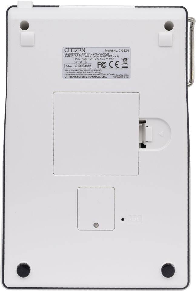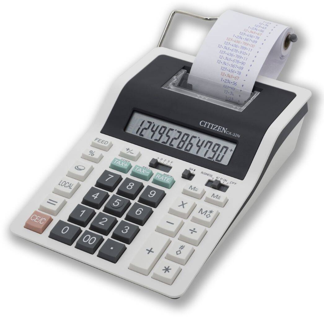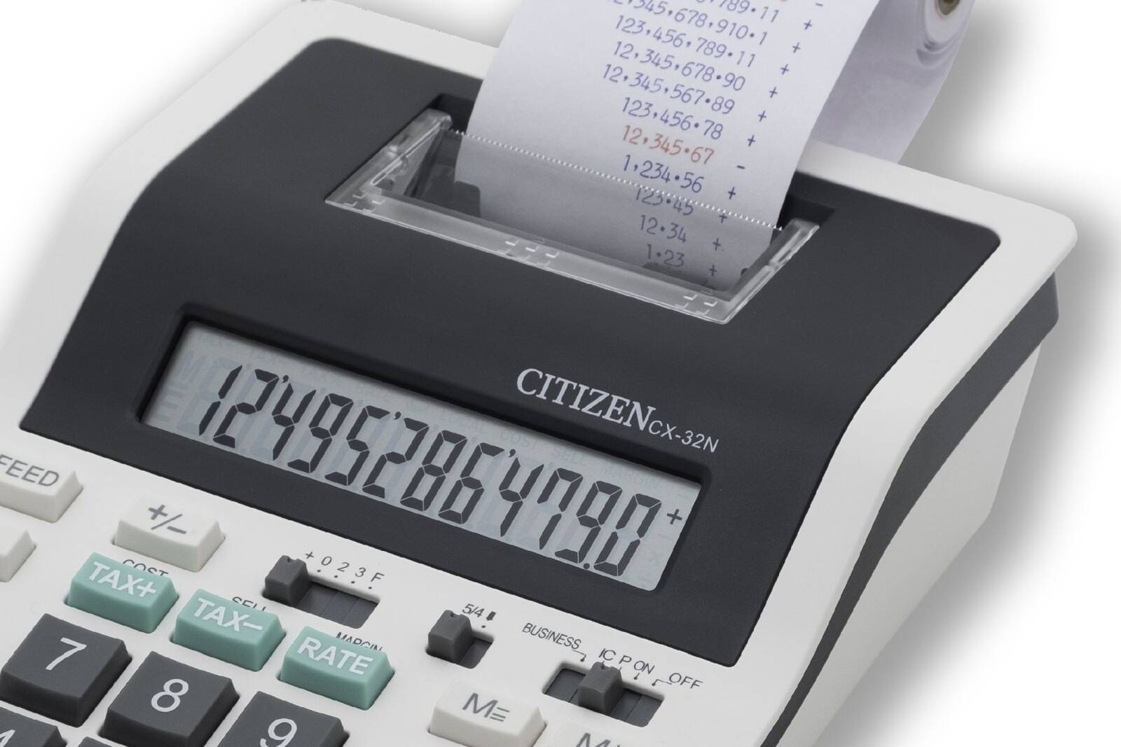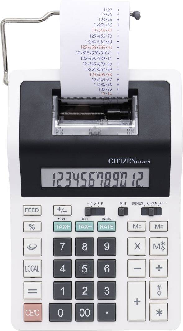 Kalkulator drukujący Citizen CX-32N dedykowany jest dla osób ceniących sobie możliwość wydrukowania wyników, doskonale się sprawdza w księgowości. Szybkość druku 2,0 linie na sekundę usprawnia pracę, a 2 - kolorowy wydruk pozwala na szybką weryfikację liczb ujemnych. Model CX-32N posiada funkcje obliczania kosztów i marży w przystępny sposób.