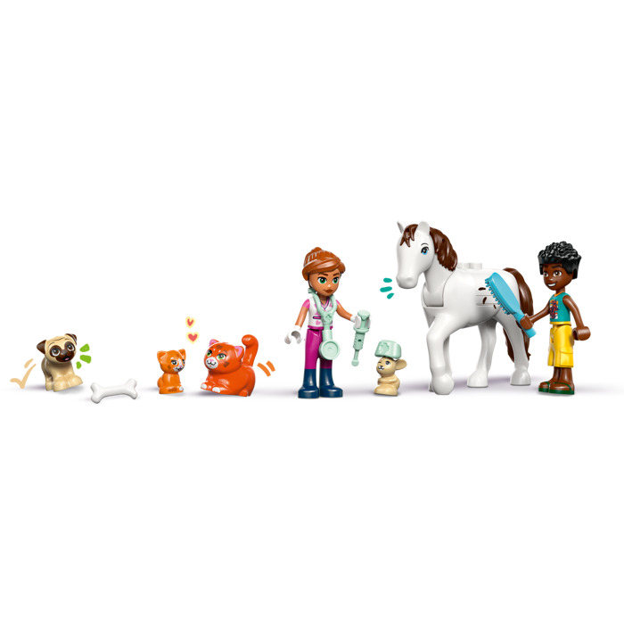 Zachęć czterolatków i starsze dzieci do tworzenia własnych historii dzięki zestawowi LEGO® Friends Lecznica dla zwierząt (42696). Ten szczegółowy zestaw do zabawy w weterynarza zawiera wszystko, czego potrzebują maluchy, by bawić się w odgrywanie ról i opiekę nad zwierzętami. Jest tam stajnia dla koni, gabinet lekarski, legowiska dla zwierząt, karma, sprzęt weterynaryjny, plac zabaw dla zwierzątek i wiele innych rzeczy. Zestaw zawiera minilaleczki Zac i Valerii, a także figurki konia, psa, królika i dwóch kotów. Akcesoria związane z weterynarią, takie jak strzykawka, termometr, notes i długopis, inspirują do zabawy w odgrywanie ról. Dla konia jest siodło, siano, szczotka, marchewka, woda, końska kupa i kask dla jeźdźca. Ten zestaw to świetny prezent dla przedszkolaków, które uwielbiają zestawy ze zwierzątkami. Zabawka LEGO dla czterolatków i starszych dzieci zawiera elementy umożliwiające szybkie rozpoczęcie zabawy w budowanie. Aplikacja LEGO Builder poprowadzi dzieci przez intuicyjne budowanie. Mogą w niej przybliżać i obracać zestawy za pomocą instrukcji 3D oraz śledzić postępy w budowaniu. Zestaw składa się ze 141 elementów.