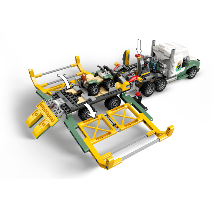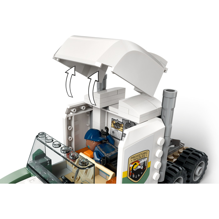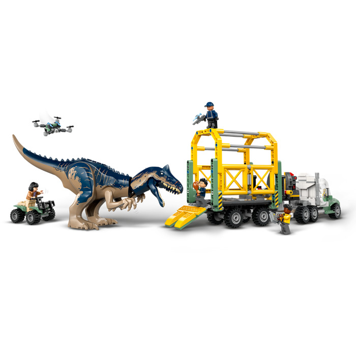Dzięki zestawowi Dinomisje: ciężarówka do transportu allozaura (76966) na ośmiolatków i starsze dzieci czekają nowe i nieoczekiwane przygody ze zwierzętami. Ten zestaw LEGO® Jurassic World z dinozaurem to świetny prezent na przyjęcie dla dzieci, inspirujący do odgrywania ról. Pozwala dzieciom opowiadać różne historie, których bohaterami będą odlewana figurka allozaura z ruchomymi nogami, głową i otwieranym pyskiem, a także minifigurki Dariusa, Kenjiego, Yaz i strażnika. W zestawie jest naczepa z otwieranym dachem i maską, kabina z miejscem na trzy minifigurki z przestrzenią ładunkową, przyczepa z klatką z przednimi podporami i otwieraną tylną rampą, klatka otwierana za pomocą dźwigni, quad i dron oraz mnóstwo innych akcesoriów zachęcających do wymyślania historii.